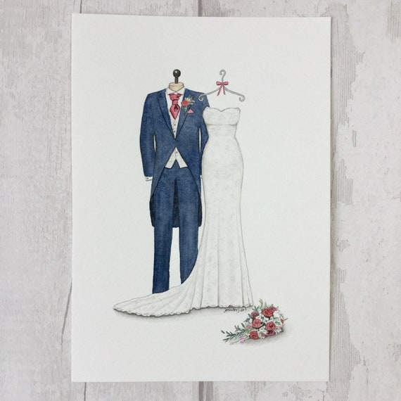 Custom Wedding Dress Suit Bouquet Sketch Illustration Etsy Uk